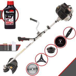 Roçadeira Kawashima KW43-LE À Gasolina 2T 43cc 1,7HP Com Lâmina 3 Pontas + Faca 2 Pontas 330mm 2,7mm + Faca 40 Dentes 255mm 2mm + Faca 80 Dentes 255mm 1,5mm + Óleo TOYAMA LUB FG50 500ml 2T