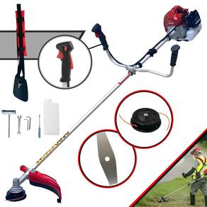 Com guidão ergonômico lateral, permite um alcance amplo e maior mobilidade, capaz de aumentar a produtividade diária. Possui motor 2 tempos á gasolina, de 52 Cilindradas; 2,5HP de potência que proporcionam maior performance e economia na operação.Seu conjunto de acessórios inclui kit de ferramentas, cinto de suporte almofadado, carretel de nylon e lâmina de corte 3 pontas.