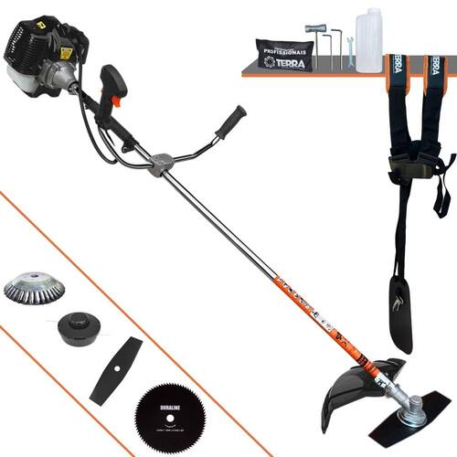 Roçadeira Lateral Terra GRH-520 Black À Gasolina2 Tempos 52cc 2,5HP +Faca 80 Dentes 255mm 1,5mm+Escova Rotativa 200mm 38 Cerdas