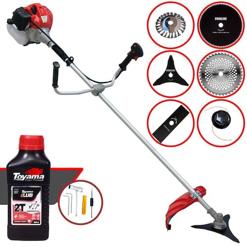 Operador, instrução de mistura recomendada para a utilização da máquina com o Óleo 2T TOYAMA LUB (1:50) 500ml : Observe sempre a proporção da mistura específica deste óleo, onde para cada 1 Litro de Gasolina utilizar 20ml do Óleo TOYAMA, ou para cada 500ml de Gasolina utilizar 10ml do Óleo TOYAMA. Além de manter o bom funcionamento, você pode prevenir futuras falhas e excesso de fumaça no cilindro de combustão.