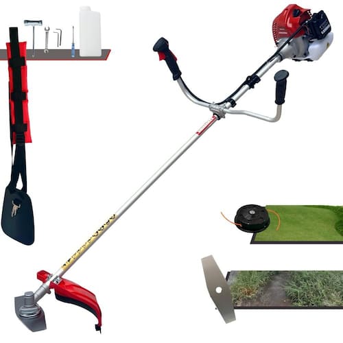 Com guidão ergonômico lateral, permite um alcance amplo e maior mobilidade, capaz de aumentar a produtividade diária. Possui motor 2 tempos á gasolina, de 43 Cilindradas; 1,7HP de potência que proporcionam maior performance e economia na operação. Seu conjunto de acessórios inclui kit de ferramentas, cinto de suporte almofadado, carretel de nylon e lâmina de corte 3 pontas.