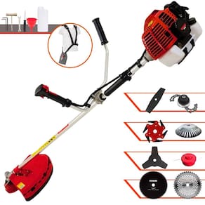 Roçadeira Lateral Kawashima KW52-L À Gasolina 2T 52c 2,5HP Com Lâmina 3 Pontas + Faca 2 Pontas 330mm + Faca 40 Dentes 255mm + Faca 80 Dentes 255mm + Faca 6 Pontas 250mm + Escova Rotativa 38 Cerdas 200mm + Trimmer