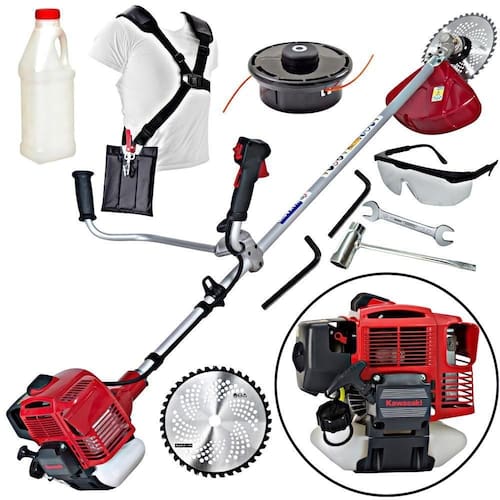 A roçadeira Nakashi L 450-K é equipada com motor Kawasaki de 45,4cc, 2 tempos, à gasolina, ideal para uso intensivo. Conta com manopla ergonômica, e duas opções de corte: lâmina de vídea e cabeçote de fio de nylon. Acompanha acessórios. ;