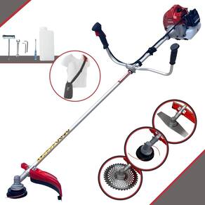 Com guidão ergonômico lateral, permite um alcance amplo e maior mobilidade, capaz de aumentar a produtividade diária. Possui motor 2 tempos á gasolina, de 43 Cilindradas; 1,7HP de potência que proporcionam maior performance e economia na operação. Seu conjunto de acessórios inclui kit de ferramentas, cinto de suporte almofadado, carretel de nylon e lâmina de corte 3 pontas.