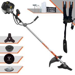 Roçadeira Podador de Grama Terra GRH-430 À Gasolina 2T 43cc 1,7HP Completa Com Carretel de Nylon + Faca 3 Pontas + Faca 80 Dentes + Escova de Aço