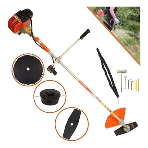 1 Lâmina 2 Pontas, 1 Carretel, 1 Dosador de Combustível, 1 Cinto de Sustentação, 1 Motor