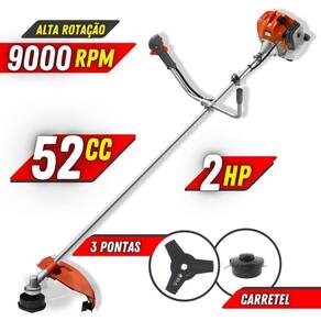 Com guidão ergonômico lateral, permite um alcance amplo e maior mobilidade, capaz de aumentar a produtividade diária. Com motor 2 tempos á gasolina, de 51,6 Cilindradas (52cc) e 2,0 HP de potência que proporcionam grande qualidade no corte. Seu conjunto de acessórios inclui kit de ferramentas, cinto de suporte duplo almofadado, carretel de nylon e lâmina de corte 3 pontas.