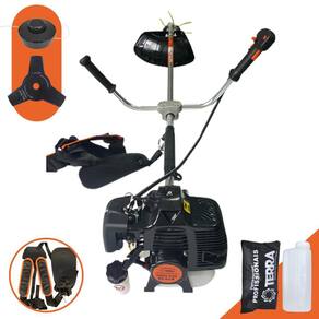 Roçadeira Lateral Terra GRH-430 Black À Gasolina 2 Tempos 43cc 1,7HP??MARCA TERRA - A ROÇADEIRA MAIS VENDIDA DO BRASIL??MELHOR CUSTO BENEFÍCIO DO MERCADO?ROÇADEIRA POTENTE E ECONÔMICA ?ALTA ROTAÇÃO E PERFORMANCE COM ECONOMIA?ASSISTÊNCIA TÉCNICA EM TODO TERRITÓRIO NACIONAL?PRODUTO COM GARANTIA OFICIAL TERRA EM TODO BRASIL?PEÇAS DE REPOSIÇÃO DE FÁCIL ACESSO??EQUIPE DE PÓS-VENDAS A DISPOSIÇÃO??A Roçadeira GRH-430 Black conta com motor 2 tempos à gasolina, 43 cilindradas e potência de 1,7 HP. Possui partida leve, com sistema manual, auto-retrátil, e com punhos ergonômicos de fácil aceleração, equipada com carburador universal BIGDINT de maior potência e economia, e também cinto de sustentação duplo com ombreiras almofadadas, proporcionando assim um maior conforto, ergonomia e segurança ao operador.??A Roçadeira Terra GRH430 foi projetada para facilitar o trabalho de roçada de capim, arbustos, pastagens, controle de pastos, trabalhos de jardinagem, limpeza e manutenção de grandes áreas verdes com sua utilização em sítios; fazendas e chácaras. Ideal também para manutenção e limpeza de vias públicas e rodovias. Desenvolvida com uma estrutura resistente e suporte do guidão reforçado, seus componentes possuem alta durabilidade. A vantagem da roçadeira é que pode ser utilizada em locais irregulares, morros, buracos, florestas, entre outro com dificuldade de acesso. Produto de alta qualidade, desempenho e durabilidade.??Operador, instrução recomendada para a utilização da máquina: Verifique a montagem e estado dos componentes da roçadeira; Assegure-se de estar utilizando todos os equipamentos de segurança; Leia o manual para saber como dar a partida em uma roçadeira; Segure a roçadeira com ambas as mãos durante a operação; Mantenha todas as partes de seu corpo longe da roçadeira durante sua operação; Sempre desligue o motor da roçadeira antes de deixá-la desassistida; Transporte sempre a roçadeira com o motor desligado; Proceda com a manutenção e limpeza da roçadeira. Há cuidados básicos que devem ser levados em conta para prolongar a vida útil de cada equipamento, dessa forma, além de manter o bom funcionamento você pode prevenir futuras falhas. Lembrando que se não cumprir as instruções de segurança pode resultar em lesões graves.??ESPECIFICAÇÕES TÉCNICAS:??Tipo: Roçadeira lateral, com guidão?Cód: 705486B?Modelo: GRH430 Black?Marca: Terra ?Motor: À Gasolina, 2 tempos ?Potência: 1,67HP (1,7HP)?Cilindradas: 42,7 (43cc)?Rotação: 6.500RPM?Ignição: Eletrônica?Partida: Manual Auto-retrátil?Carburador: Diafragma com Regulagem?Embreagem: Centrifuga em alumínio fundido?Capacidade do tanque de combustível: 1200ml?Autonomia: Aprox. 60min?Eixo Cardã: Eixo Rígido de 8mm x 9 estrias ?Tubo do Eixo Cardã: Tubo de Alumínio 26mm - 153cm?Guidão: Bi-Partido fixado com suportes parafusados?Lâmina: 3 Pontas, 255mm, espessura 2mm, furo 1"?Combustível: Gasolina com óleo 2 tempos, proporção 25:1?Carretel Nylon: Automático, libera o fio com um toque no chão?Peso: 9,50 kg??ITENS INCLUSOS:??01: Roçadeira GRH430;?01: Carretel com Nylon; ?01: Lâmina 3 pontas; ?01: Cinto Duplo com Ombreiras Almofadadas;?01: Misturador de combustível;?01: Kit ferramentas de manutenção; ?01: Manual de Instrução;