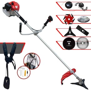 Roçadeira Lateral ANMAX CG430P À Gasolina 2 Tempos 43cc 2HP + Faca 3 Pontas 255m + Faca 40 Dentes 255mm + Faca 80 Dentes 255mm + Trimmer + Escova Rotativa 38 cerdas + Faca 6 Pontas