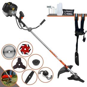 Roçadeira Lateral Terra GRH-430 Black À Gasolina 2 Tempos 43cc 1,7HP + Faca 2 Pontas 330mm 2,7mm + Faca 40 Dentes 255mm 2mm + Trimmer + Faca 6 Pontas 250mm