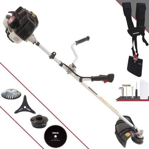 Roçadeira Kawashima KW43-LE À Gasolina 2T 43cc 1,7HP Com Lâmina 3 Pontas + Faca 80 Dentes 255mm 1,5mm + Escova Rotativa 38 Cerdas 200mm