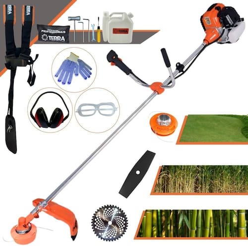 Roçadeira Profissional Lateral Terra GR520XP À Gasolina 2 Tempos 52cc 2,5HP Com Lâmina 40 Dentes + Faca 2 Pontas 330mm 2,7mm