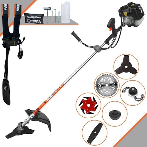 Roçadeira Profissional Lateral Terra Grh430 á Gasolina 43cc 2t 1,7hp + Faca 2 Pontas 330mm + Faca 40 Dentes 255mm + Tri