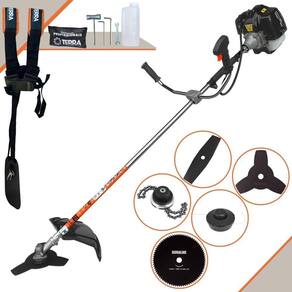 Roçadeira Profissional Lateral Terra GRH-430 Black À Gasolina 2 Tempos 43cc 1,7HP + Faca 2 Pontas 330mm 2,7mm + Faca 80 Dentes 255mm 1,5mm + Trimmer