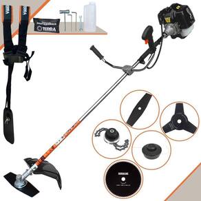 Roçadeira Profissional Lateral Terra GRH-520 Black À Gasolina 2 Tempos 52cc 2,5HP + Faca 3 Pontas 255mm 2,9mm + Faca 80 Dentes 255mm 1,5mm + Trimmer