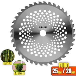 O DISCO DE CORTE 40 Dentes de Vídea acompanha um anel de redução, ou seja, pode ser utiizada para roçadeiras de furo 20mm ou 25mm além de possui pintura feita por Cataforese a qual é mais resistente à corrosão. Seus dentes de vídea soldados à laser possuem encaixe especial, garantindo mais segurança, desempenho e durabilidade, as lâminas são balanceadas com menor vibração, corte contínuo e suave, com mais conforto ao operador e mais longevidade para a roçadeira. Possui maior rendimento no trabalho e não precisa ser afiada antes do, uma vez que possuem ponta 4 lados de polímero, solda de ponta tipo U. Ideal para terrenos com cascalhos e pequenos galhos para serrar.