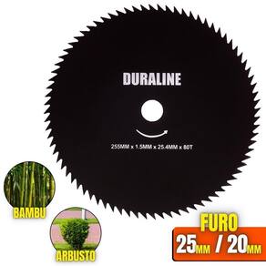 O DISCO DE CORTE 80 Dentes acompanha um anel de redução que pode ser utiizada para roçadeiras de furo 20mm ou 25mm, sendo feita em aço cromo vanádio que garante mais segurança, desempenho e durabilidade. É uma lâmina balanceada, fazendo com que haja menor vibração, corte contínuo e suave, com mais conforto ao operador e mais longevidade para a roçadeira. Possui maior rendimento no trabalho e não precisa ser afiada antes do. É um disco multi pois pode ser aplicado para diferentes trabalhos, tendo em vista que pode serrar madeiras até 10cm, dentre elas esse modelo corta: Arbustos, Pequenas Árvores, Capim Grosso, Capim Elefante, Capim Guanxuma, Capim Annoni, Vassourinha, Bambu, Cana de Açúcar , Mato Alto, Capim Napier, Capim Sapê, Touceiras entre outros.