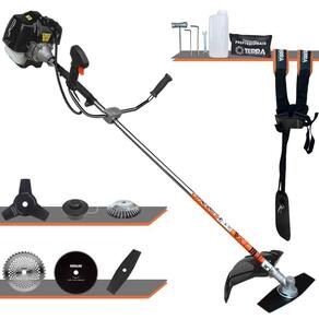 Roçadeira Profissional Lateral Terra GRH-520 Black À Gasolina 2 Tempos 52cc 2,5HP + Faca 3 Pontas 255mm 2,9mm + Faca 40 Pontas 255mm 2mm + Faca 80 Pontas 255mm 1,5mm + Escova Rotativa 200mm 38 Cerdas