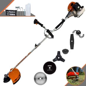 Roçadeira Profissional Lateral Terra GRHB-430 Bipartida À Gasolina 2 Tempos 43cc 1,7HP + Faca 3 Pontas + Faca 40 Pontas + Faca 80 Pontas + Trimmer