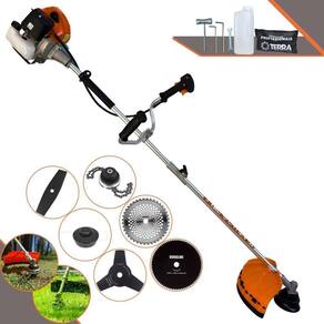 Roçadeira Profissional Lateral Terra GRHB-430 Bipartida À Gasolina 2 Tempos 43cc 1,7HP + Faca 3 Pontas + Faca 40 Pontas + Faca 80 Pontas + Trimmer