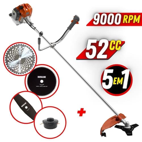 É uma roçadeira adpatável que pode se tornar multifuncional, podendo ser adaptado diversos modelos de acessórios, pois possui tubo de encaixe universal 28mm, e encaixe 25,4mm (1) para Lâminas e Discos, ampliando ainda a sua diversidade de cortes. Realizando o trabalho de forma ágil e confortável, com cinto duplo almofadado que acompanha o equipamento, proporcionando maior conforto, ergonomia e ao operador. Com guidão ergonômico lateral, permite um alcance amplo e maior mobilidade, capaz de aumentar a produtividade diária. Possui motor 2 tempos á gasolina, de 51,6 Cilindradas (52cc) de rotação 2,0 de potência que proporcionam maior performance e economia na operação.
