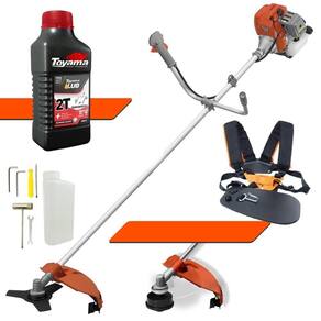 Com guidão ergonômico lateral, permite um alcance amplo e maior mobilidade, capaz de aumentar a produtividade diária. Possui motor 2 tempos á gasolina, de 51,6 Cilindradas (52cc) 13.000 de rotação 2,0 HP de potência que proporcionam maior performance e economia na operação. Seu conjunto de acessórios inclui kit de ferramentas, cinto de suporte duplo almofadado, carretel de nylon e lâmina de corte 3 pontas.