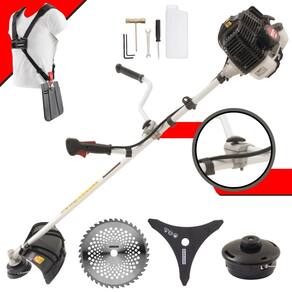 Roçadeira Robusta Kawashima KW52LE À Gasolina 2T 52cc 2,5HP 10.000rpm 3 Opções de Corte Com Lâmina 3 Pontas + Lâmina 40 Dentes + Carretel de Nylon