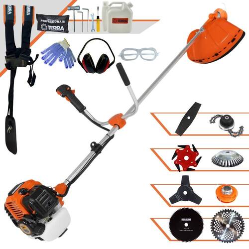 Roçadeira Lateral Terra GR520XP À Gasolina 2 Tempos 52cc 2,5HP Com Lâmina 40 Dentes + Faca 2 Pontas 330mm 2,7mm + Faca 3 Pontas 255mm 2,9mm + Faca 6 Pontas 250mm + Faca 80 Dentes 255mm 1,5mm + Escova Rotativa 38 Cerdas 200mm + Trimmer