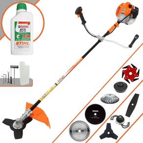 Roçadeira Lateral Vulcan VR520H À Gasolina 2 Tempos 52cc 2,5HP + Faca 2 Pontas 330mm + Faca 40 Dentes 255mm + Faca 80 Dentes 255mm + Faca 6 Pontas 250mm + Trimmer + Escova Rotativa 200mm 38 Cerdas + ÓLEO CASTROL STIHL 500ml