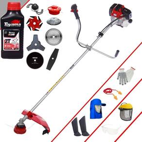 Roçadeira Profissional À Gasolina Toyama RT43L 43cc 1,7HP 2T Com Lâmina 3 Pontas + Faca 2 Pontas 330mm + Faca 40 Dentes 255mm + Faca 80 Dentes 255mm + Faca 6 Pontas 250mm + Trimmer + Escova Rotativa 200mm 38 Cerdas + Óleo Toyama FG50 500ml + Kit EPI Completo