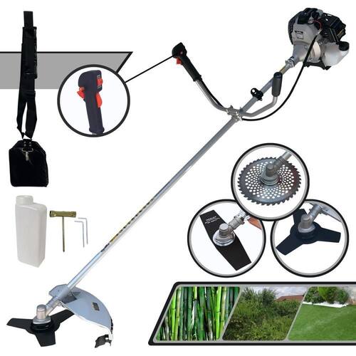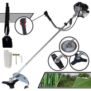 Com guidão ergonômico lateral, permite um alcance amplo e maior mobilidade, capaz de aumentar a produtividade diária. Possui motor 2 tempos á gasolina, de 42,7 Cilindradas, 12.000 de rotação 1,7HP de potência que proporcionam maior performance e economia na operação. Seu conjunto de acessórios inclui kit de ferramentas, cinto de suporte almofadado, carretel de nylon e lâmina de corte 3 pontas.