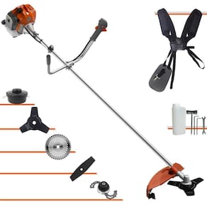 Com guidão ergonômico lateral, permite um alcance amplo e maior mobilidade, capaz de aumentar a produtividade diária. Possui motor 2 tempos á gasolina, de 51,6 Cilindradas (52cc) 13.000 de rotação 2,0 HP de potência que proporcionam maior performance e economia na operação. Seu conjunto de acessórios inclui kit de ferramentas, cinto de suporte duplo almofadado, carretel de nylon e lâmina de corte 3 pontas.