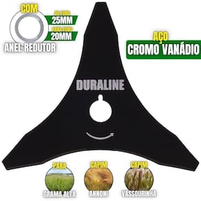 A LÂMINA (FACÃO) 2 Pontas acompanha um anel de redução que pode ser utiizada para roçadeiras de furo 20mm ou 25mm, sendo feita em aço cromo vanádio que garante mais segurança, desempenho e durabilidade. É uma lâmina balanceada, fazendo com que haja menor vibração, corte contínuo e suave, com mais conforto ao operador e mais longevidade para a roçadeira. Possui maior rendimento no trabalho e não precisa ser afiada antes do uso. É uma lâmina Multiuso de 2 pontas que pode ser aplicada para diferentes trabalhos, possui material reforçado que é ideal para trabalhos pesados, podendo cortar os seguintes capins: Capim Grosso, Capim Elefante, Guanxuma, Annoni, Vassourinha, Capim Napier, Capim Sapê e entre outras variantes de capins.