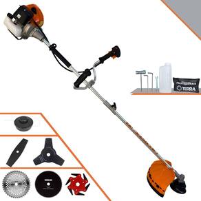 Roçadeira Lateral Terra GRHB-430 Bipartida À Gasolina 2 Tempos 43cc 1,7HP + Faca 3 Pontas + Faca 40 Pontas + Faca 80 Pontas + Faca 6 Pontas 250mm