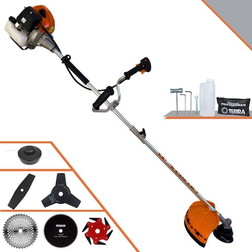Roçadeira Terra GRHB430 Bi-Partida 43cc 2T 1,7HP Com Carretel Nylon + Faca 2 Pontas + Faca 3 Pontas + Faca 6 Pontas + Faca 40 Dentes + Faca 80 Dentes