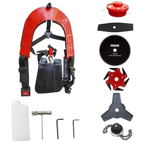 Roçadeira Profissional À Gasolina Toyama RT43L 43cc 1,7HP 2T Com Lâmina 3 Pontas + Faca 2 Pontas 330mm + Faca 80 Dentes 255mm + Trimmer + Faca 6 Pontas 250mm