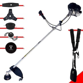 Roçadeira Profissional À Gasolina Toyama RT43L-B-25A 43cc 1,7HP 2T Com Lâmina 3 Pontas + Faca 2 Pontas 330mm + Faca 80 Dentes 255mm + Trimmer