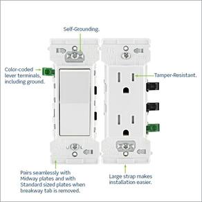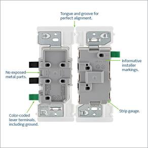 - Mais fácil – A alça grande facilita as instalações, bem como a capacidade de usar fio de cobre sólido e trançado de calibre 14 e 12