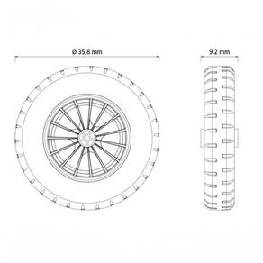 - Pneu maciço de borracha macia, 358 mm x 75 mm;