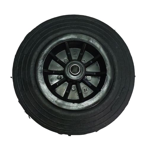 Pmn - roda borracha maciça com núcleo de polipropileno. Dureza: 80 shore a. -20ºc a +70ºc . Fabricadas com aro de borracha maciça e núcleo de polipropileno. Indicadas para aplicações em pisos irregulares onde é necessário facilidade de movimentação, amortecimento a impactos e vibrações. A velocidade de trabalho indicada é até 4km/h. Roda 8 Altura roda 200 mm Largura roda 50 mm Largura eixo 62 mm Eixo furo passante sem rolamento Furo 1/2 com manga de eixo sem manga de eixo 7/8 Carga 140 kgs
