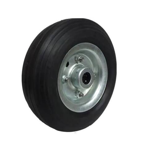 Roda pm - borracha maciça com núcleo de chapa estampada. Dureza: 80 shore a. -20ºc a +70ºc . Produzidas com aro de borracha maciço, com núcleo em chapa estampada com acabamento zincado. São leves e resistentes, tem rodagem macia e silenciosa, e são indicadas para serviços leves em pisos em bom estado. A velocidade de trabalho indicada é até 4km/h