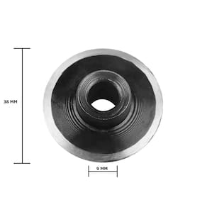 Diâmetro da roda (disco): 38mm; Diâmetro do furo: 9mm;