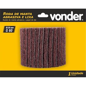 Marca: VonderConteúdo da embalagem: 1 Roda de manta abrasiva e lixa.Destaques e diferenciais:Utilizadas também na remoção de riscos leves e no recondicionamento de superfícies, produzindo um acabamento acetinado em uma só etapa.Dicas de uso:Ideal para remoção e acabamento de superfícies metálicas diversas, principalmente aço inox. Indicada para uso na Politriz Escovadeira PEV 1380 VONDER.Detalhes Técnicos:Diâmetro externo da roda abrasiva: 120,0 mm Largura da roda abrasiva: 100,0 mm Diâmetro do furo da roda de lixa: 19,0 mm Tipo de grão abrasivo: Carbeto de silício Grão: G 60 Rotação máxima: 3.800/min Ean: 7893946728786