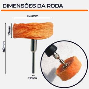 Roda de Pano Flanela 50mm para Polimento Haste 3mm Micro Retíficas - Marca: Dremax - Modelo: PP013 - Diâmetro: 50mm - Espessura: 15mm - Diâmetro da haste: 3mm - Comprimento total: 60mm - Uso em micro retíficas de qualquer marca com pinça de 3mm - Pode também ser utilizado em parafusadeiras - Indicada para polimento de metais ferrosos ou não ferrosos, aço, aço inoxidável, alumínio, bronze, cobre, latão e plástico em geral - Proporciona maior rendimento durante o trabalho - Recomenda-se a utilização com pasta para polimento - Garantia: 90 dias contra defeitos de fabricação Marca: Dremax