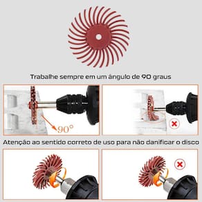 - Os discos de cerdas podem ser empilhados, flexíveis, frescos, duráveis e fornecem um acabamento uniforme. Use quantos discos forem necessários