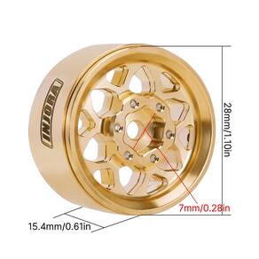 Especificações: Número da peça: W1110 Material: Latão Deslocamento: -4,7 mm (-0,5 cm) Diâmetro externo: 28 mm (1,1 pol.) Largura: 15,4 mm (0,61 pol.) Cubo da roda: 7 mm (0,28 pol.) Cada peso: 35 g/peças (0 kg) Conteúdo da embalagem: 4 rodas de carro RC de 2,5 cm - - O deslocamento de 4,7 mm oferece uma postura mais ampla, melhorando a presença do seu veículo. - Ofereça peso adicional no ponto mais baixo do seu veículo para ajudar a maximizar a estabilidade. - Rodas maiores dão ao seu veículo uma postura mais agressiva e maior presença de palco. - A roda é feita de latão, resistente e durável. - Adequado para atualização de modelos TRX4M, SCX24, FCX24 1/24 e 1/18 RC.