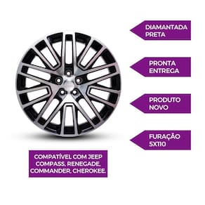 -produto na caixa; -produto com 1 ano de de fábrica; -produto certificado pelo inmetro: 003797/2013. Fotos e vídeo reais do produto. Modelo: 8040 jeep compass aro:20 Tala / largura: 7,5 Furação: 5x110 Offset / et: 31 mm Compatível com carros jeep compass, jeep renegade, jeep commander, jeep renegade, jeep cherokee. O preço anunciado refere-se a 1 uma unidade de roda. Marca: Não Informado