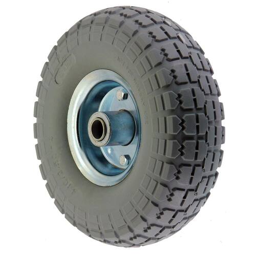 Roda Maciça 350X4 Pu Super Elástica Anti Furos Roda 350x4 em PU com rolamento de roletes, anti furo Macia como um pneu mas sem o inconveniente de furar e a necessidade de encher. Ideal para ambientes industriais e comerciais ou em qualquer lugar que haja risco de perfuração por materiais pontiagudos. Super elástica: Possui rodagem altamente macia e silenciosa com excelente estabilidade e fácil manutenção. Utilizada em carrinho de carga, carrinho de mão, carrinho plataforma e armazém. CARACTERÍSTICAS TÉCNICAS: Diâmetro: 350mm Aro: 4 Eixo 7/8 Rolamento de roletes Capacidade de carga: 150kg Não indicado para uso em veículos automotores. Ean: 7899658904081