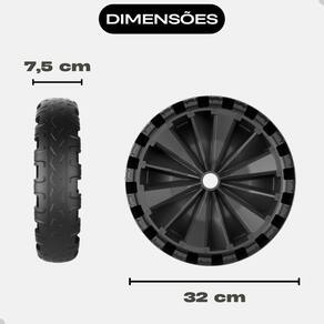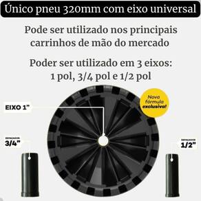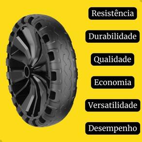 Especificações Técnicas Modelo: Pneu Flex Border 320mm Material: Termoplástico de alta qualidade Peso: 2,2kg Compatibilidade: Eixos de 1 pol, 3/4 pol e 1/2 pol Características: Não fura, não murcha, absorve impactos e oferece máxima durabilidade.