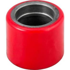 Roda com núcleo de ferro fundido e revestimento de poliuretano.